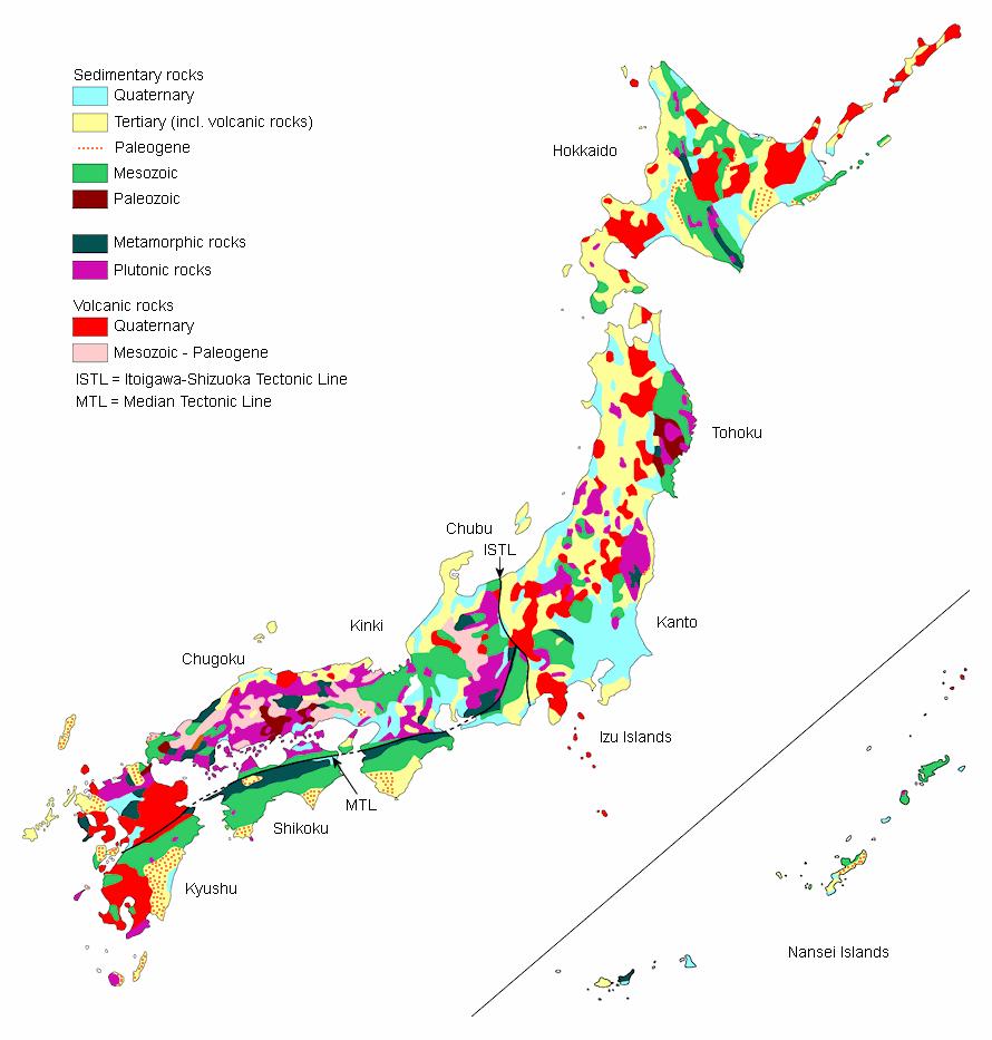 Carte géologique du japon. Le japon carte géologique (Asie de l'est - Asie) à imprimer. Le japon carte géologique (Asie de l'est - Asie) à télécharger.