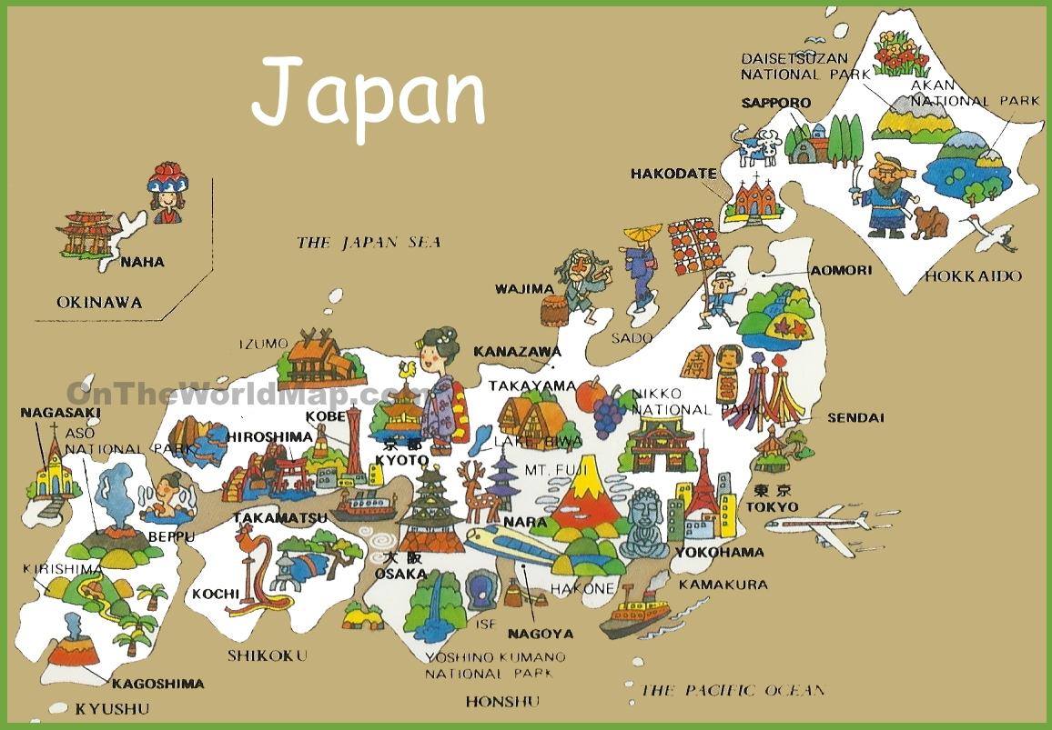 Carte touristique du japon. Carte touristique du japon (Asie de l'est - Asie) à imprimer. Carte touristique du japon (Asie de l'est - Asie) à télécharger.