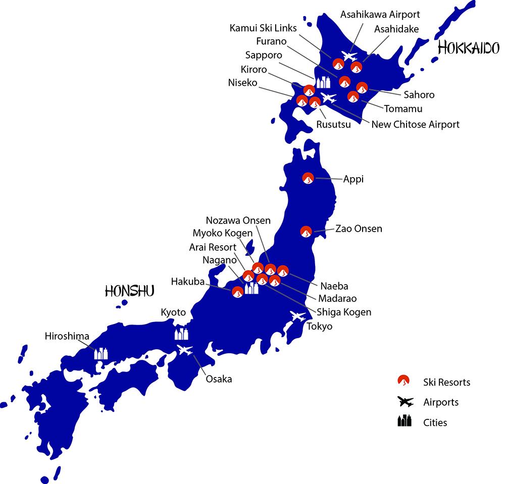 Le japon stations de ski de la carte